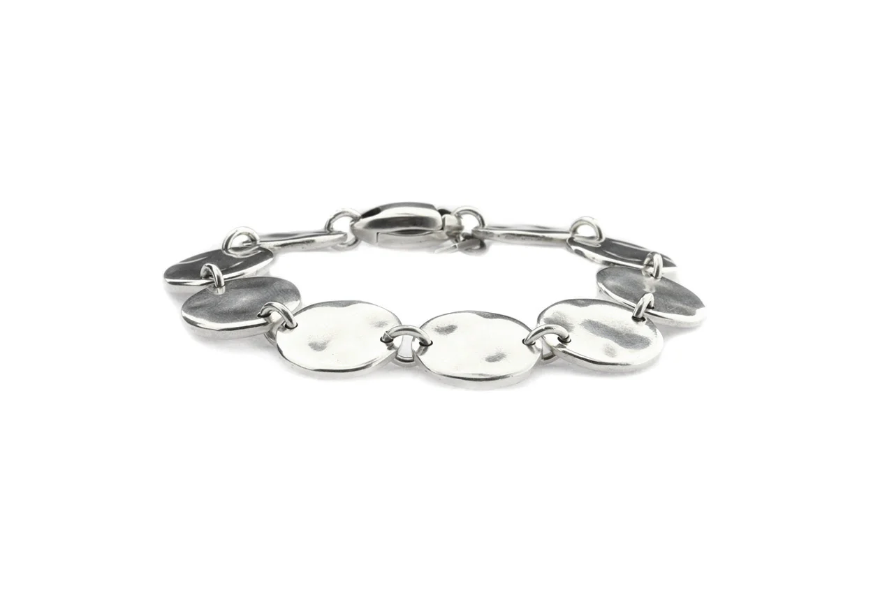 Armband ANIEK is gemaakt van diverse 15mm ronde, zilverkleurige schijfjes en sluit met een magneetsluiting. De zilverkleurige onderdelen zijn gemaakt van hoogwaardig, nikkelvrij metaal.