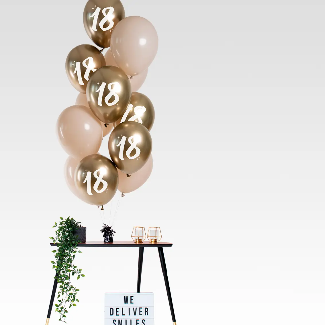 | Producten | Thema's | Ballonnen Golden Latte 18 Jaar 33cm – 12 stuks