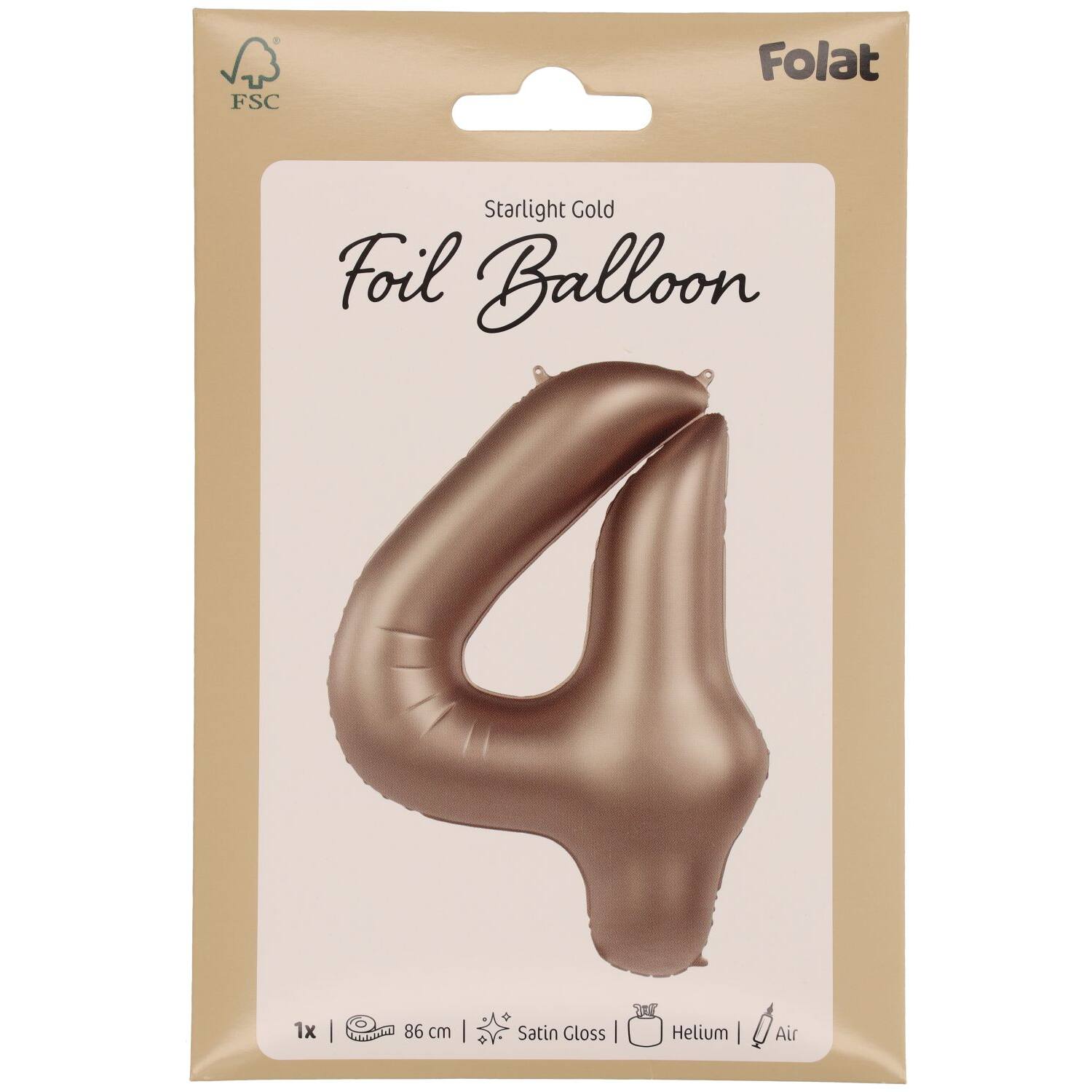 | Producten | Thema's | Folieballon Cijfer 4 – Starlight Gold – Satin Gloss – 86 cm