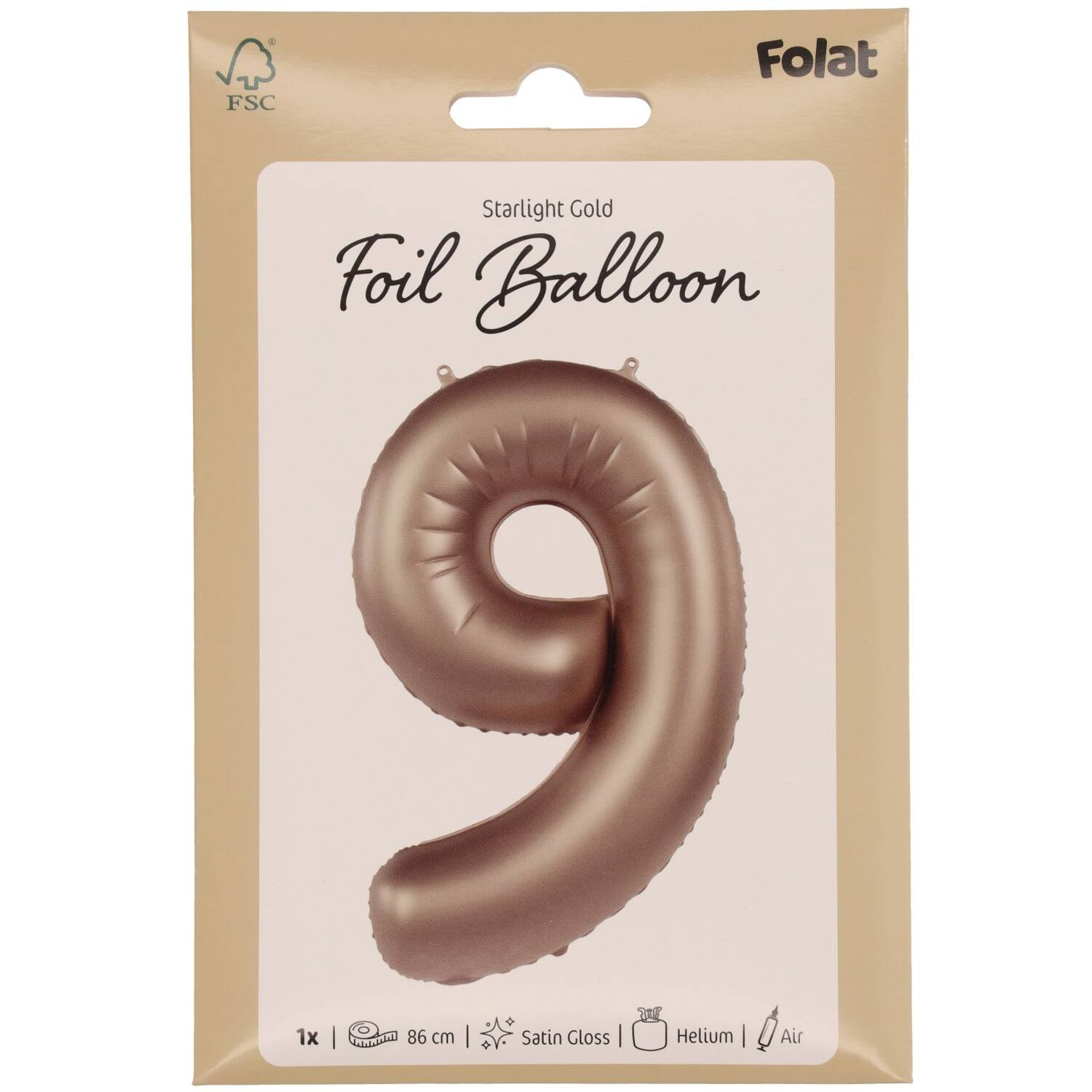 | Producten | Thema's | Folieballon Cijfer 9 – Starlight Gold – Satin Gloss – 86 cm
