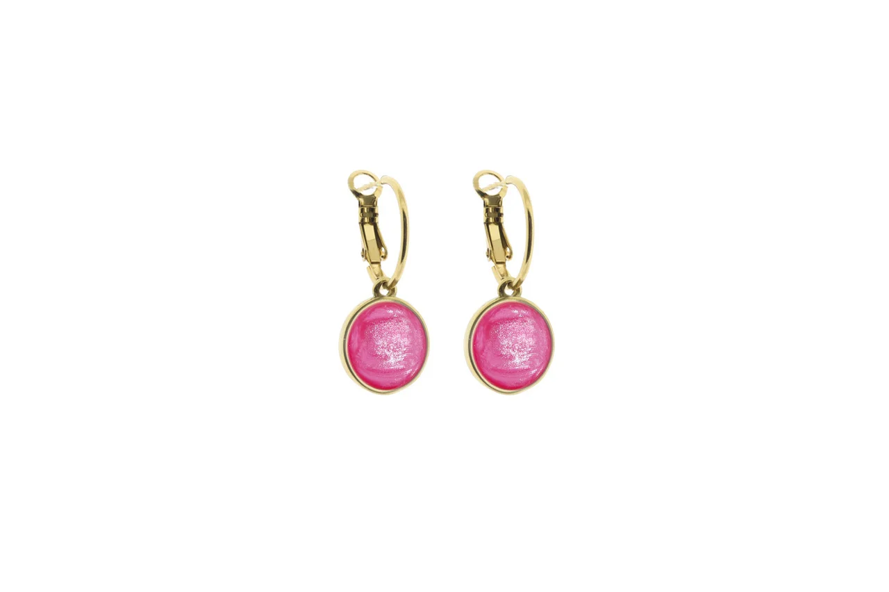 Een creool met daaraan een 12mm setting met een mooie cabochon. De oorbel is gemaakt van hoogwaardig goudkleurig stainless steel en is ongeveer 3,5cm lang.