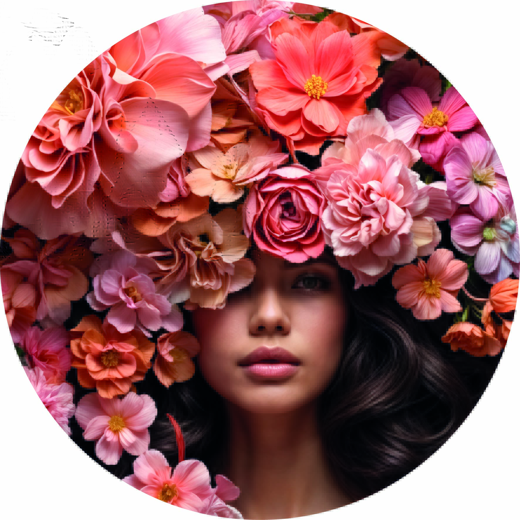 | Producten | Muurcirkel | Pink flower woman
